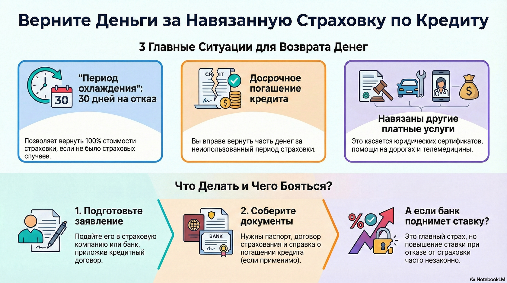 Важно понимать: чаще всего речь идёт не об обязательных платежах, а о добровольных продуктах, от которых можно отказаться и вернуть деньги на законных основаниях.